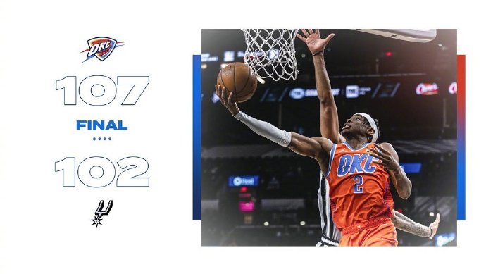 NBA常规赛雷霆对阵马刺,雷霆最近遭遇2连败。开场后雷霆外线轮流投进三分取得领先,不过马刺稳扎稳打紧追不舍没有让分差被拉开。第二节回来雷霆突然手感丢失,马刺打出反击完成反超并且依靠外线手感将分差拉大到两位数,上半场马刺61-50领先雷霆。下半场回来雷霆加快进攻节奏,他们多次打出反击一度反超比分,不过米切尔连续两个三分帮助马刺稳住节奏,但第四节雷霆又连续掀起反扑完成反超,马刺最后进攻乏力,最终雷霆107-102逆转击败马刺。