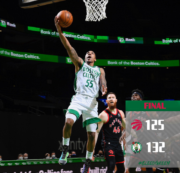 24直播网3月5日讯 NBA常规赛凯尔特人主场迎战猛龙,凯尔特人近来状态不错取得3连胜。开场后场上局势就相当紧张,场上比分交替上升,猛龙依靠外线的不错手感取略微领先。第二节刚开始两队在外线连续对飚三分,猛龙一度扩大领先,但沃克又帮助凯尔特人缩小分差,上半场猛龙70-66领先凯尔特人。下半场回来猛龙命中率有所下降,布朗和塔图姆两人联手爆发帮助猛龙实现反超,随后凯尔特人一直对猛龙保持压制,猛龙始终未能夺回领先,最终凯尔特人132-125击败猛龙取得4连胜。