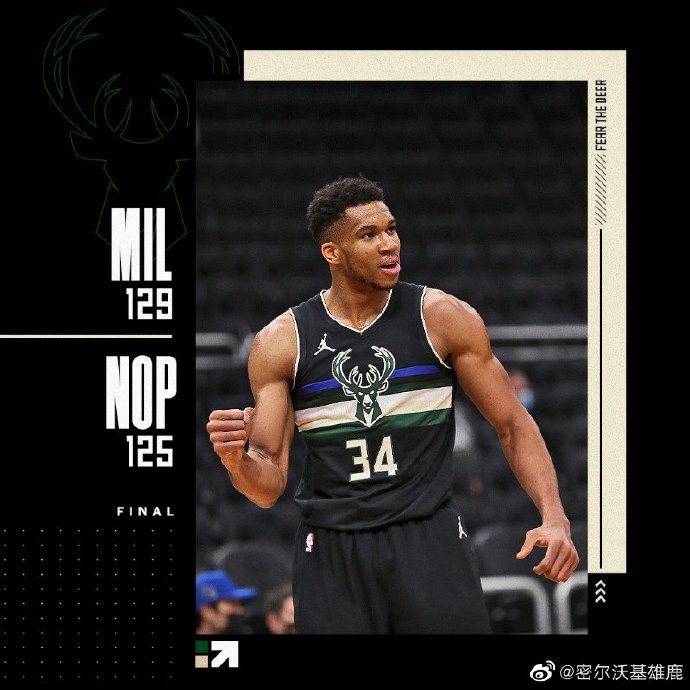[微博原声] 字母哥38+10 米德尔顿31+7 锡安34+8 雄鹿险胜鹈鹕迎四连胜