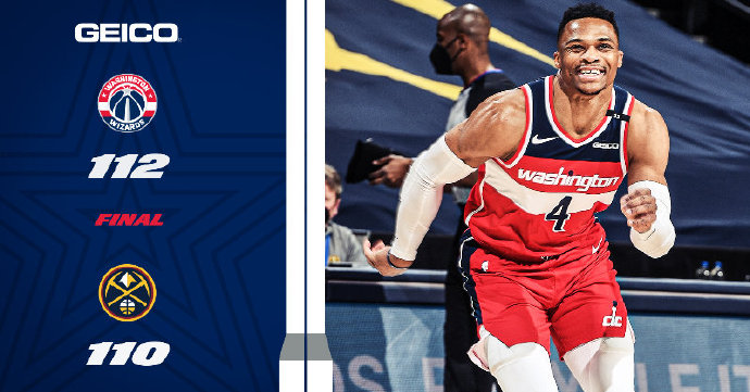 NBA常规赛,掘金今日迎战奇才,前者上场比赛战胜开拓者暂列西部第七位,而后者上场比赛则是输给了快船排在东部第十三位,本场贝尔坦斯因伤缺战。比赛上来约基奇就迅速进入状态,个人包揽球队前七分,不过威少和比尔同样表现不俗,奇才也在两人的带领下始终保持着领先结束半场。易边再战,双方始终保持拉锯战,场上比分交替领先,比赛一直打到了最后时刻,坎帕佐的绝杀三分未能命中,最终奇才112-110险胜掘金。