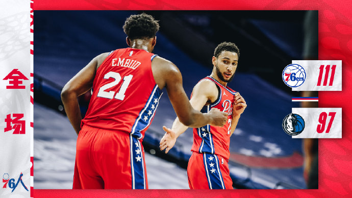 [微博全场集锦] 恩比德23+9 西蒙斯15+7 东契奇19分 76人主场轻取独行侠