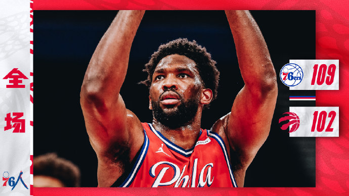[微博全场集锦] 恩比德18+12 哈里斯23+7+5 西亚卡姆22+6+7 76人终结猛龙四连胜