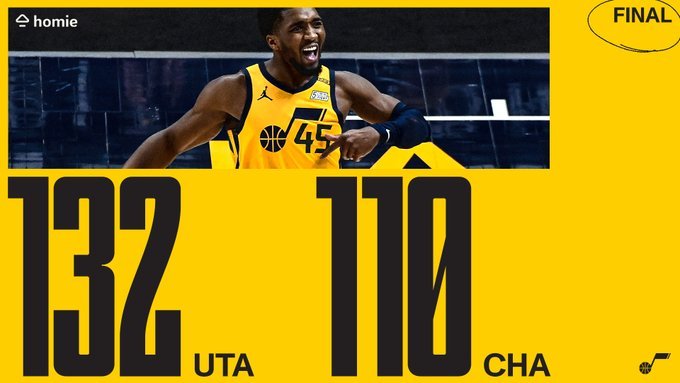 NBA常规赛,爵士今日迎战黄蜂,前者上场比赛输给了快船连胜被终结,不过仍高居西部榜首,后者上场比赛则是绝杀勇士,暂列东部第八位,本场格拉汉姆缺战。比赛上来两队就进入对攻,尤其是爵士的外线手感十分火热,但逐渐进入状态的黄蜂还是追上了比分,整个上半场双方都处在胶着的状态。易边再战,双方继续保持拉锯,但是三节末段到末节爵士突然发力打出一波流,分差直接达到19分之多,全场更是投出了破队史纪录的28记三分,比赛就此失去悬念,最终爵士大胜黄蜂,双杀对手。
