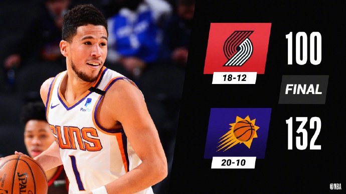 近期状态火热的太阳主场迎战开拓者。主队最近9战8胜,排名重回西部第四,赶超的对象正是今天的对手;客队近期状态也不落下风,在输给奇才队之前也经历了一波6连胜。这场西部前四的排位之争对双方来说都不容有失。首节,布克状态极其火热,单节砍下17分带领太阳对抗多点开花的开拓者。节末太阳在轮换阵容阶段把优势扩大。第二节双方状态一般,开拓者在利拉德休息阶段靠角色球员紧咬比分。最后2分钟太阳如梦方醒,重新掌控局面。下半场,太阳攻防两端全面压制开拓者,第三节单节赢下20分。最后一节,角色球员的对战中,开拓者依旧没能缩小分差,太阳主场132-100轻松拿下比赛胜利。