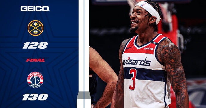[微博全场集锦] 比尔罚球绝杀 贝尔斯坦9记三分 奇才险胜掘金迎3连胜