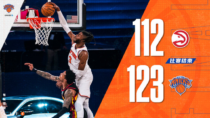 NBA常规赛,尼克斯今日坐镇主场迎战老鹰,前者2连胜暂列东部第七,后者则是一波三连败排在东部第十位。首节比赛尼克斯手感火热,在进攻端一直压制着老鹰,兰德尔首节飙进3记3分个人单节拿到17分帮助尼克斯建立起11分优势。次节双方运动战进球较少,进攻端老鹰找回感觉,特雷杨带领老鹰在进攻端不断突破内线造犯规并且开始投进3分将分差缩小到3分。第三节上来老鹰进攻火力不减打出一波7-0将比分反超,尼克斯其他人状态不佳依靠兰德尔一人苦苦支撑,老鹰突然哑火尼克斯找回状态,将比分再度反超,第三节结束尼克斯继续保持5分领先。末节之争,双方上来就展开对攻,分差一直维持在2分左右,第四节后半段兰德尔开始发挥篮下强打弧顶三分样样精通,帮助尼克斯保持着5分的领先,最后老鹰追分未果,吞下四连败。