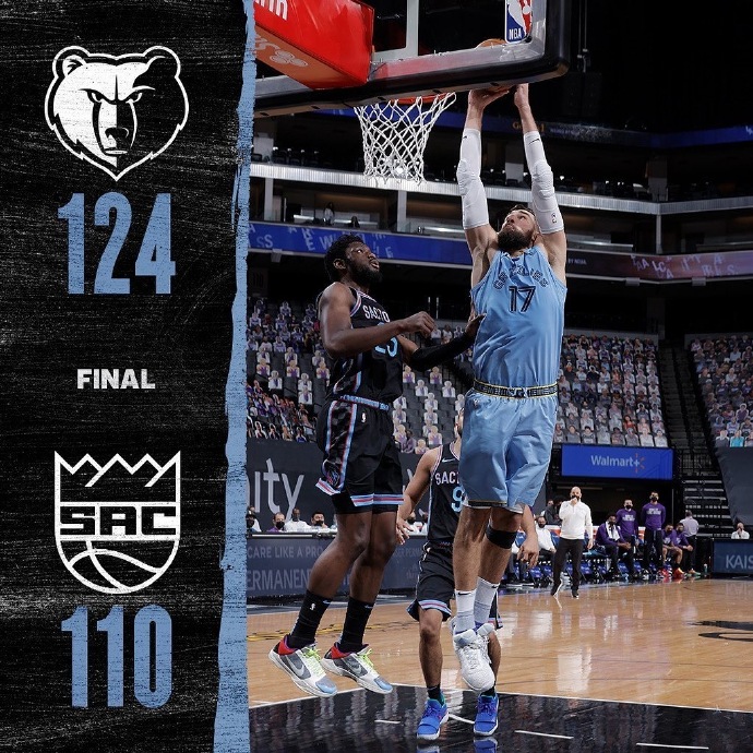 上一场惨遭湖人大逆转的灰熊今日转战黄金一号中心球馆挑战国王,对于志在进军季后赛的两队来说,都急需一场胜利将球队胜率重新拉回50%,此役灰熊的克拉克回归,国王大将巴格利则继续缺阵。首节灰熊迅速进入比赛状态,狄龙与阿伦联手打出一波13-2的攻势,帮助球队快速确立了领先优势。国王主将福克斯和希尔德异常低迷,半场三分球加起来13中1的命中率实在是有失水准,国王上半场就给自己挖了一个大坑。下半场,福克斯的手感有所回暖,哈里伯顿则继续高效表现,可惜他们两人的发挥还是无法阻挡对手的多点开花,灰熊替补球员全民皆兵,一波9-1的小高潮进一步将分差拉开到20分。末节,国王虽竭力追分却始终无法将分差缩小,最终,灰熊以124-110客场轻取国王。