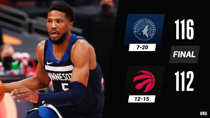 四连败的森林狼客场挑战东部第八的猛龙,拉塞尔和卡尔弗的继续缺阵,让本就西部垫底的森林狼实力大打折扣,猛龙则是损失了两位锋线悍将阿努诺比和渡边雄太。不过球队战绩的巨大差距并没有让比赛从开始就陷入一边倒的局面,反倒是森林狼凭借一波三分雨一度占据场上主动,但随后猛龙凭借防守端联防加盯人的变化逼迫森林狼手感下降失误不断,而范弗里特半场不可阻挡轰下19分,猛龙也以58-54反超4分。易边再战风云突变,森林狼单节37-25的进攻高潮,再次将比分反超8分,末节决战森林狼突然断电失误不断,猛龙9-0的进攻高潮把比分追平,此后唐斯连得5分帮助森林狼重新把领先优势扩大到了6分,而西亚卡姆也在最后时刻错失空篮,最终,森林狼17年后再次在猛龙主场获得一胜,结束四连败的同时也送给对手两连败。