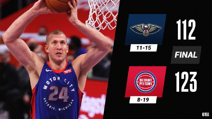[微博全场集锦] 普拉姆利17+10+10 锡安26+8 活塞六人上双送鹈鹕3连败