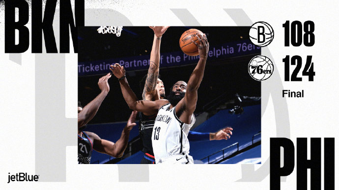 在上一场主场不敌猛龙之后,篮网马不停蹄的赶往费城挑战76人,杜兰特由于接触新冠阳性患者被隔离无法出战,而欧文因手指扭伤缺阵,因此本场是哈登加盟篮网之后首次独自带队的比赛。独自带队的哈登首节“既当爹又当妈”,他在第一节送出9+4+5的全面数据带队和76人周旋,而在次节篮网曾依靠一波11-2的攻势扭转局面,奈何刚刚抢到领先就迅速陷入得分荒,76人用一波7-0的攻势取得3分领先进入下半场。第三节开局篮网表现还算不错,哈登单节攻下13+3+3的数据一直带队咬住比分,但又是后半节的轮换导致局面迅速下滑加之防守端崩盘,76人在内外开花中打出一波22-7的攻势,单节42分的表现打穿了篮网防线并确立起15分领先。末节篮网没有任何反扑征兆比分也一直维持在两位数之上。最终,76人轻取篮网巩固自己东部榜首位置。