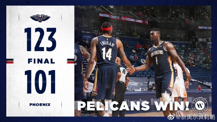 鹈鹕(8-12):锡安28分7板6助,英格拉姆23分4板6助,亚当斯11分13板4助,血布11分3板3助,鲍尔18分6板,哈特10分3板2助,雷迪克10分,埃尔南戈麦斯4分5板,沃克6分5助。