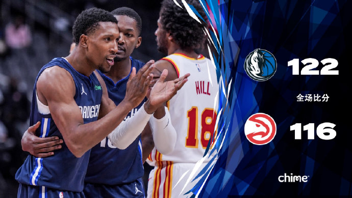 NBA常规赛独行侠对阵老鹰,独行侠近来状态低迷遭遇6连败,开场后独行侠率先打出攻势取得领先,不过加里纳利帮助老鹰追上比分,第二节两队连续打成平手,在半场结束前老鹰打出攻势取得略微领先,上半场老鹰56-53领先独行侠。下半场回来波尔津吉斯和东契奇联手夺回领先,老鹰依靠外线多次命中三分再次反超。第四节独行侠多点开花建立起两位数领先,老鹰主要靠科林斯艰难拿分,虽然最后特雷-杨一度帮老鹰追到只差3分,但独行侠将领先优势保持到最后,最终独行侠122-116射落老鹰结束6连败。