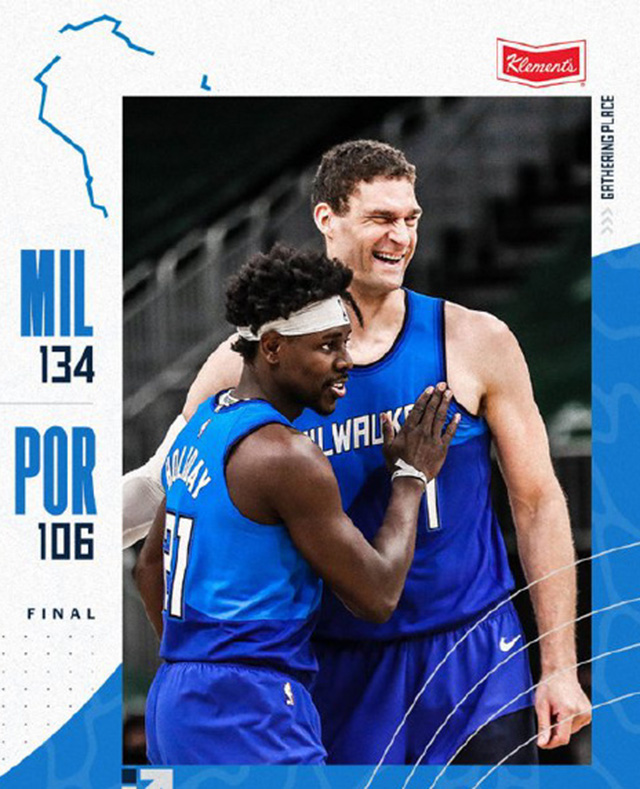 [微博全场集锦] 霍勒迪22+7+6 波蒂斯21+8 利特尔30+6 雄鹿大胜开拓者