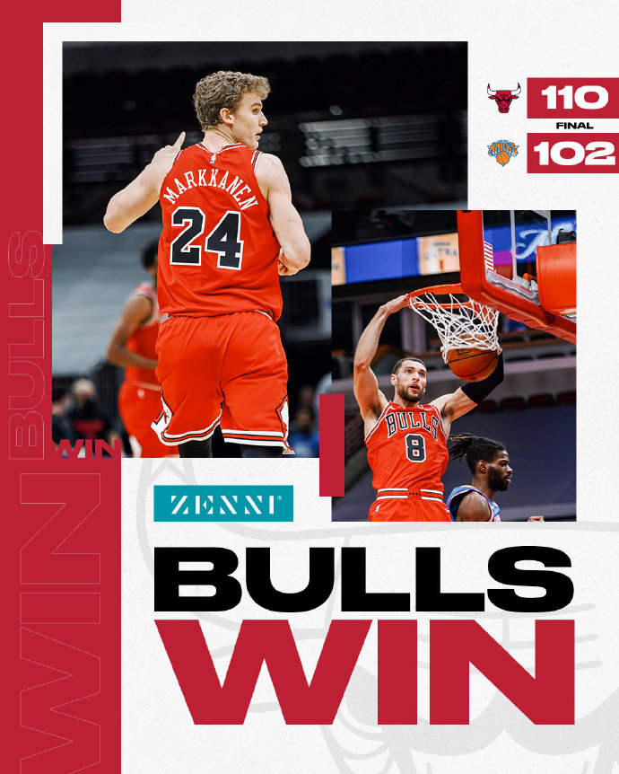 [微博全场集锦] 马尔卡宁30+5 兰德尔23+11+7 公牛6人得分上双险胜尼克斯