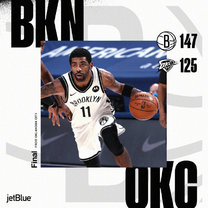 [微博原声] 欧文25+5+7 哈登三双 杜兰特缺战 篮网9人上双大胜雷霆