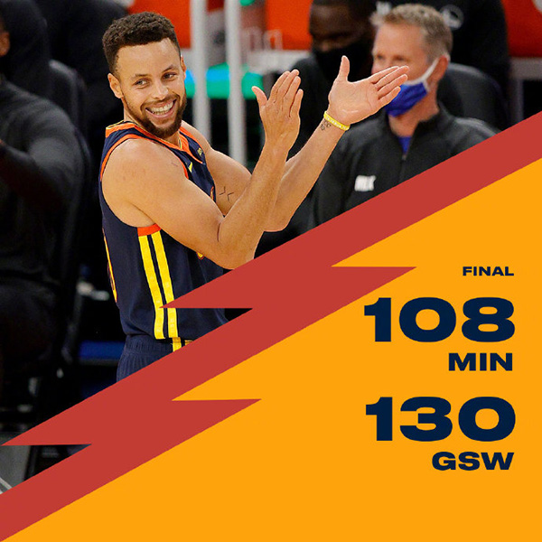 勇士(9-8):库里36分4板3助3断、维金斯23分6板3断3帽、格林10分6板4助、乌布雷14分6板4助3断、怀斯曼13分4板2帽。