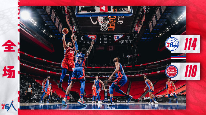 [微博全场集锦]恩比德33+14 西蒙斯20+9+7 76人力克活塞取3连胜