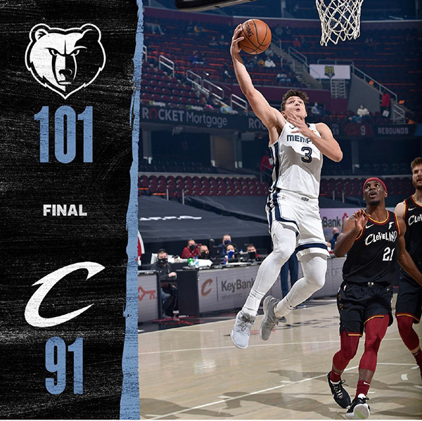 NBA常规赛骑士主场迎战灰熊,莫兰特继续缺阵,开场后骑士率先打出攻势取得领先,第二节灰熊主攻内线,麦基和德拉蒙德也连续回应,不过灰熊在上半场结束前掀起反扑完成反超,上半场灰熊47-46领先1分。下半场回来灰熊攻势依旧猛烈将领先优势扩大到两位数,不过骑士依靠外线三分掀起反扑又在第四节将比分追平,但最后时刻灰熊发挥更胜一筹拿下比赛胜利,最终灰熊101-91击败骑士,灰熊取得2连胜,骑士遭遇2连败。