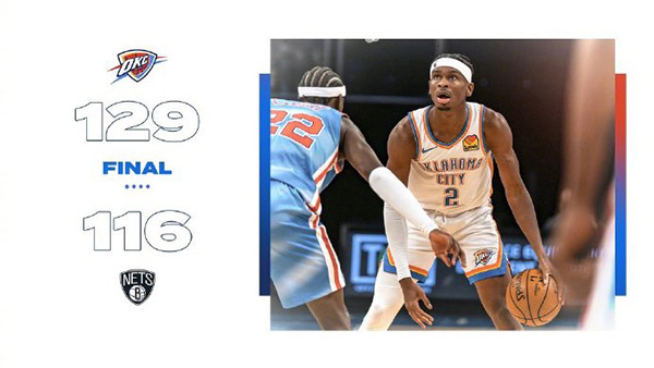 [微博全场集锦] 亚历山大31+7+6 杜兰特36+11 雷霆战胜篮网