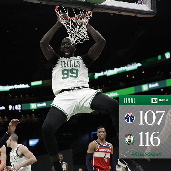 [微博全场集锦] 塔图姆32分 布朗27+13 比尔41分 绿军力克奇才取4连胜