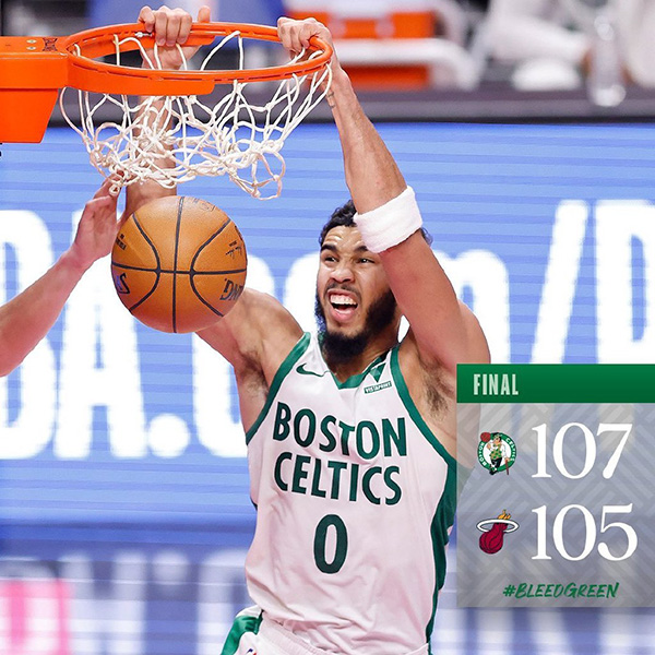 [微博全场集锦] 普理查德补篮绝杀 塔图姆27+5 布朗21+12 绿军扑灭热火