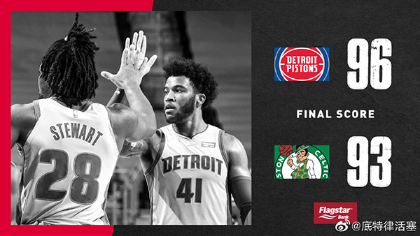 NBA常规赛,活塞今日迎战凯尔特人,前者开季遭遇四连败未尝胜绩,在东部排名倒数第二,而后者则是取得了两连胜,升至东部第七位,本场格里芬因脑震荡缺战。比赛上来凯尔特人进入状态较慢,单节仅拿到12分,活塞把握住机会取得两位数的领先优势,进入次节场上分差一度超过二十分,但此后凯尔特人状态回暖半场将分差缩小到15分。易边再战,凯尔特人还是在双星的带领下追上比分,比赛悬念保持到最后,关键时刻凯尔特人陷入得分荒,罗斯突破打进反超上篮,布朗绝平三分不中。最终活塞力克凯尔特人,终于迎来赛季首胜。