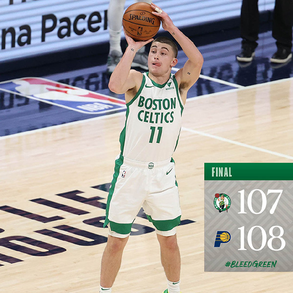 步行者坐镇主场迎战凯尔特人,此役奥拉迪波因伤病管理缺阵。上半场两队你来我往,绿军凭借塔图姆在次节末连续得分,以55-49稍稍领先结束半场。不过,绿军在第三节哑火,步行者在沃伦的带领下打出12-0的攻击波反超比分。末节两队打得十分胶着,最后时刻沃伦出现传球失误,斯玛特快速反击得手,绿军一度反超比分。但萨博尼斯最后一攻篮下强攻得手,步行者以108-107险胜绿军,取得新赛季开局3连胜,同时送给绿军2连败。