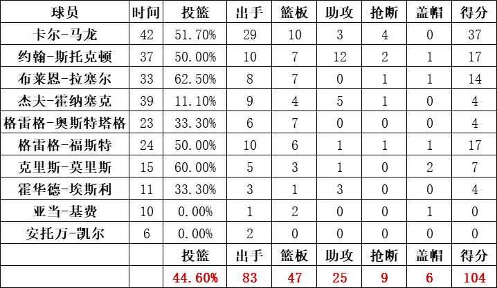 【总决赛G3】 公牛93-104爵士 马龙37分斯托克顿关键罚球犹他主场复仇