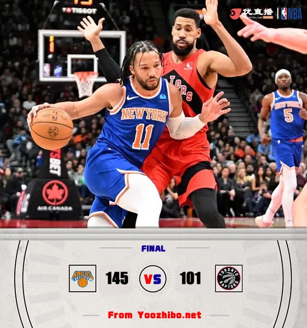 猛龙今日坐镇主场迎战尼克斯,尼克斯近期状态不错,最近7场比赛拿下6场;猛龙则遭遇11连败。首节之争状态明显更出色的尼克斯早早进入状态,麦克布莱德上来就是三记三分,并取得18-7的完美开局;猛龙在后半段依靠不错的进攻短暂缩小比分,但防守端实在拉开单节丢了45分并导致第一节就落后12分;次节尼克斯延续火热进攻状态,麦克布莱德联手布伦森半场砍下37分,尼克斯半场轰出80分并领先21分。休息归来猛龙开局还能够和尼克斯僵持,但后者能够一整节保持高效进攻,布伦森、迪文岑佐和麦克布莱德如同开挂一般频频取得进球,三节结束时尼克斯的优势已经来到31分;巨大分差让比赛也早早失去悬念。最终,尼克斯客场大胜猛龙拿下比赛。