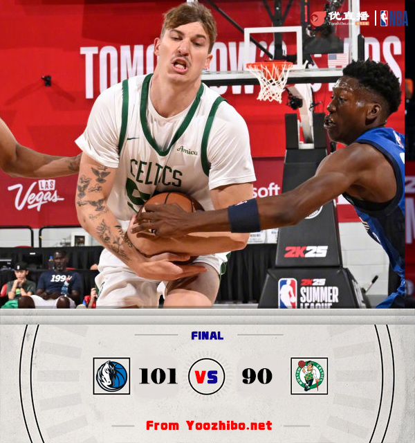 24直播网 7月20日讯 NBA夏季联赛,独行侠对阵凯尔特人。比赛开始,独行侠率先发力,多点开花打出12-2的攻击波很快取得两位数领先,凯尔特人里突外投努力追赶,次节双方围绕10分分差展开拉锯战,独行侠连投带罚保持优势,凯尔特人连中三分顽强咬住,半场战罢独行侠55-45领先凯尔特人。易边再战,凯尔特人连投带罚拿分,独行侠连中三分保持10分左右优势,末节独行侠稳扎稳打,凯尔特人苦苦追赶无果。最终,独行侠101-90击败凯尔特人。