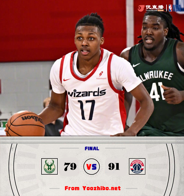NBA夏季联赛,雄鹿对阵奇才。比赛开始,双方开场短暂相持,随后奇才外线开火,连中6个三分取得两位数领先,次节奇才火力不减,又是三分3连击一举将优势扩大到20分,雄鹿及时回暖打出9-0止血,半场战罢奇才46-35领先11分。易边再战,雄鹿大举反击,多点开花不断蚕食分差,奇才进攻端哑火,雄鹿连中三分完成反超,末节奇才找回手感,里突外投完成19-6的攻击波重获两位数优势,雄鹿苦苦追赶无果。最终,奇才91-79力克雄鹿。