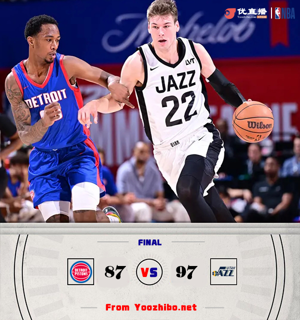 24直播网7月22日讯 NBA夏季联赛排位赛,活塞对阵爵士。开场后菲利波夫斯基和阿布马斯轮番砍分帮助爵士取得领先,霍兰状态不错但凭一己之力难以阻止分差被拉大,第二节爵士进攻顺畅继续扩大领先优势,菲利波夫斯基手感依旧出色单节轰下16分,上半场打完爵士领先28分。易边再战,活塞在霍兰的带领下扭转场上局面,他们掀起反扑一路追分,在第四节他们追到一度只差5分,但随后他们陷入得分荒,爵士稳住阵脚将胜利拿下,最终爵士97-87击败活塞。