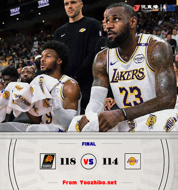 24直播网10月7日讯 NBA季前赛,太阳对阵湖人。比赛刚上来戴维斯就完成一记空接暴扣,随后詹姆斯连续大帽普拉姆利和布克,湖人先声夺人,布克外线连飙三分,拉塞尔和里夫斯先后砍分回应帮助湖人巩固优势。第二节上来布朗尼登场迎来NBA首对父子同台,太阳连续通过三分追分,詹姆斯不仅自己进攻拿分还为队友送出助攻,太阳多次缩小分差但湖人总能及时回应将比分又拉开。下半场湖人替补表现不佳,太阳继续努力追分,最后2分钟湖人崩盘被太阳反超比分,湖人手握绝平机会也没有把握住,最终太阳118-114逆转湖人。