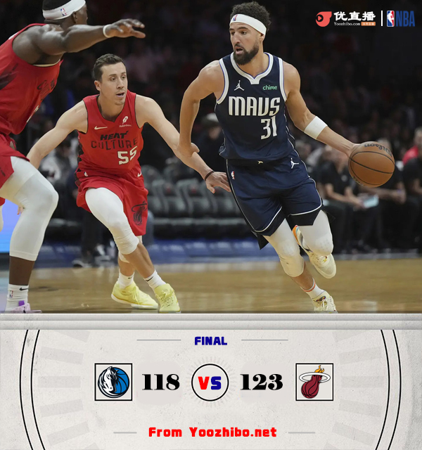 24直播网讯北京时间11月25日讯 NBA常规赛,热火今日迎战独行侠,前者上场比赛战胜76人,后者则是取得四连胜,此役巴特勒和加福德都能打,东契奇和罗齐尔缺战。比赛上来,克莱就展示了不错的状态连续得分,独行侠也是取得场上领先,不过热火一直紧咬比分并在节末打出9-0成功实现反超,次节独行侠还是不得分,热火再拿五分后分差达到了两位数,好在是独行侠此后有所调整,半场结束时分差还剩5分;下半场回来,两队开始展开对攻,不过热火始终保持着场上微弱的领先优势,末节双方依旧是打得难解难分,从96平一直僵持到103平,比赛悬念保持到了最后,关键时刻欧文两罚中一留给热火机会,热火打出精妙配合由巴特勒扣篮将比赛拖入加时,加时赛热火已经起势,巴特勒和阿德巴约连续得分帮助球队占据主动,独行侠则是频频打铁,最终热火加时力克独行侠,终结了后者的四连胜。