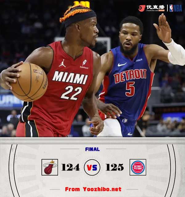 北京时间12月17日讯 NBA常规赛,热火客场挑战活塞。热火4连胜高居东部第五,活塞10胜16负排东部第十一。上半场,活塞率先发力,康宁汉姆得分助攻一肩挑,巴特勒连投带罚带队咬住,次节双方继续对攻,活塞外线开火连中三分,乐福和巴特勒联手带队给出回应,半场战罢热火59-63落后活塞。下半场,活塞占得先机打出9-0确立两位数优势,热火苦苦追赶,比斯利延续火力扩大分差,末节活塞稳扎稳打保持优势,热火突然发力,内外开花迫近比分,希罗三分将比赛拖入加时。加时赛,热火不断冲击内线拿分取得领先,哈达威三分3连击强势回应,关键时刻希罗绝杀不中,热火124-125活塞遗憾告负。
