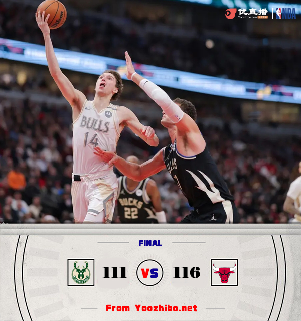 北京时间12月29日讯 NBA常规赛激战正酣,公牛和雄鹿两支东部球队直接对话,此前因小腿伤势和非新冠疾病缺席4场的利拉德此役复出,字母哥因生病继续缺阵。此役一上来公牛外线率先开张,雄鹿开局状态慢热,米德尔顿和波蒂斯短暂止血,公牛多点开花确立优势,首节结束时公牛领先8分,次节回来,雄鹿逐渐找到进攻感觉,利拉德连投带罚不断杀伤,大洛联手米德尔顿外线续上火力,雄鹿稳扎稳打缩小分差,半场战罢,雄鹿仅落后2分。易边再战后两队进攻火力放缓,利拉德连投带罚串联全队,公牛找回状态及时回应,双方你来我往比分紧咬,三节结束后雄鹿反超1分,末节决战,基迪突然发力连续取分,公牛迅速夺回优势,决胜时刻雄鹿连续不中,公牛连中罚球锁定胜局,最终公牛116-111力克对手终结3连败。