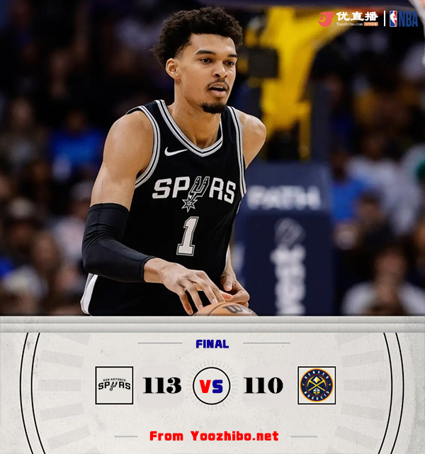 北京时间1月4日讯 NBA常规赛今日继续开打,掘金今日坐镇主场迎战马刺,这场比赛是双方两天背靠背二番战里的首场对决。首节之争两支球队状态相当都无法阻止对手抢分,约基奇和文班亚马的对决成为焦点也帮助各自球队抢分,马刺开局率先发难短时间内拉开8分优势,但末段掘金轰出连续三记三分又迅速扭转局面;次节双方继续对攻僵持,约基奇和文班亚马两人都在上半场就拿到两双数据,不过文班亚马的表现稍胜一筹也成功帮助到球队,他先是两记三分拉开比分,末段又连续篮下抢分帮助球队拿到8分优势进入下半场。休息归来掘金迅速进入状态送出16-4的攻势追上比分开启拉锯,末节最后时刻简直神仙交手交替抢分多次互换领先,最后时刻马刺犯下大错给了掘金绝杀球权,不过最后时刻约基奇也犯错,文班亚马抢断杀死比赛。最终,马刺力克掘金拿下比赛。