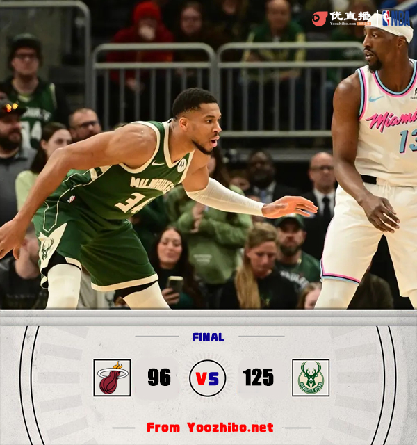 1月24日讯 NBA常规赛,雄鹿客场挑战热火。雄鹿4连胜以24胜17负高居东部第4,热火21胜21负东部第9。本场比赛因天气原因被延迟1小时开赛,巴特勒被球队禁赛。一开场,雄鹿手感冰凉,热火打出13-3的攻势取得两位数领先,字母哥高效输出带队迅速迫近比分,次节雄鹿全面回暖,单节轰下44分净胜热火19分,利拉德1秒内连投带罚收获6分,半场战罢雄鹿71-55领先热火。下半场,双方命中率下降,得分都很困难,雄鹿率先回暖将分差拉开到20分以上,末节双方围绕20分的分差展开拉锯战,热火大势已去无力回天。最终,雄鹿125-96大胜热火,客场过关。