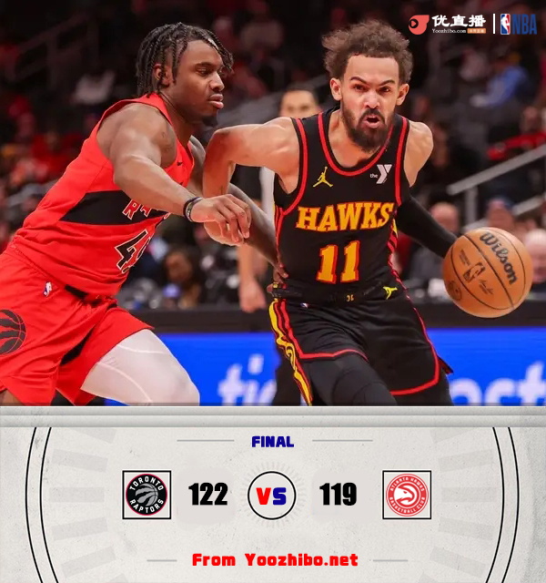 [腾讯全场集锦]巴恩斯25+6 特雷-杨18+13 丹尼尔斯22+8+5 猛龙6人15+胜老鹰