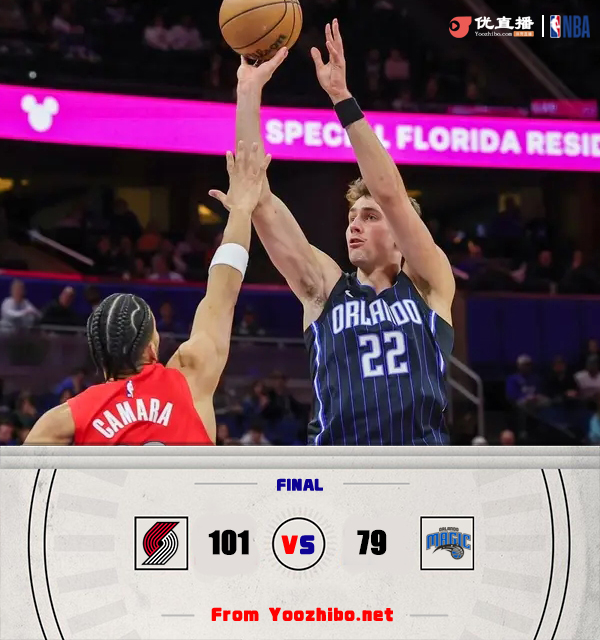 1月24日讯 NBA常规赛,魔术主场迎战开拓者。魔术近期4连败,以23胜22负暂列东部第8,开拓者15胜28负排西部倒数第3。小瓦格纳本场迎来复出。上半场,双方均表现慢热,连续打铁失误,得分非常困难,次节开拓者进攻回暖,安芬尼-西蒙斯得分助攻一肩挑带队占据场上主动,魔术依然失误连连,半场战罢开拓者47-39领先魔术。下半场,开拓者多点开花保持优势,魔术频频造成杀伤苦苦支撑,末节开拓者持续发力一举将分差拉开到20分杀死比赛。最终,开拓者101-79击败魔术,客场过关。