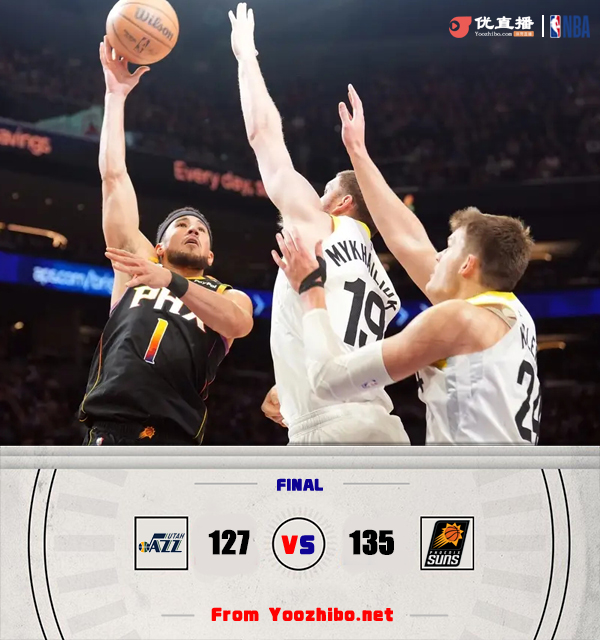 北京时间2月8日讯 NBA常规赛,太阳主场迎战爵士。太阳3连败,以25胜25负排西部第9,爵士12胜37负西部倒数第2。比赛开始,布克高效输出,但爵士多点开花将分差拉开到两位数,次节太阳火力全开,布克里突外投连续得分,爵士命中率下降,太阳单节净胜10分,半场双方战成55平。易边再战,双方大打对攻,太阳火力更猛,布克手感滚烫第三节再拿10分,末节太阳占得先机将分差拉开到两位数,爵士奋力反击轰出13-0的攻击波扳平比分,双方争夺陷入白热化,关键时刻凯斯勒连续补篮拿分,科利尔压哨也有,阿伦三分绝平,将比赛拖入加时。加时赛,太阳连中三分轰出11-3的攻击波锁定胜局。最终,太阳135-127加时击败爵士,主场过关。