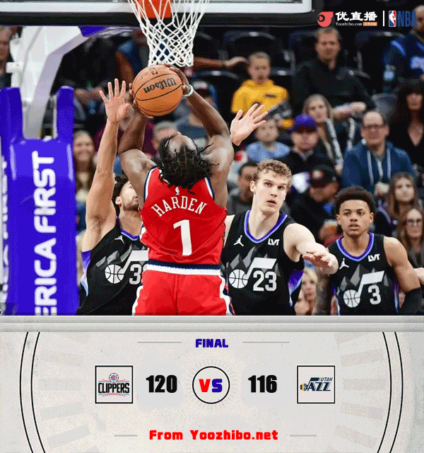 24直播网讯2月14日 NBA常规赛继续开打,爵士今日坐镇主场迎战快船,本场比赛因为背靠背的原因,快船核心之一的莱昂纳德轮休缺阵,新援本-西蒙斯则迎来快船生涯首秀。首节之争快船开局表现尚可但进入轮换阶段突然陷入被动,爵士短短4分钟里命中5记三分并送上17-8的攻势抢占主动权,期间本西接哈登秒传空接扣篮拿下快船生涯第一分;次节开局快船依旧被动,爵士则再送14-2的攻势直接拉开19分的优势。快船在前4分40秒里仅得2分的情况下及时回暖,哈登连续制造犯规拿下7分,鲍威尔协助抢分帮助球队追至6分进入下半场。休息归来快船进攻端只能依赖哈登和鲍威尔,而爵士也是抓住机会很快拉开两位数领先。不过末节快船总算不再慢热开局14-4的攻势直接扭转局势,这之后双方一路僵持,快船错失拉开比分的机会,爵士则依靠科利尔的罚球拖入加时。加时赛鲍威尔状态火热连续拿分为快船抢占先机,他一人拿下9分,包括最后连续上篮得手为球队取得5分领先奠定胜局。最终,快船加时力克爵士拿下比赛。