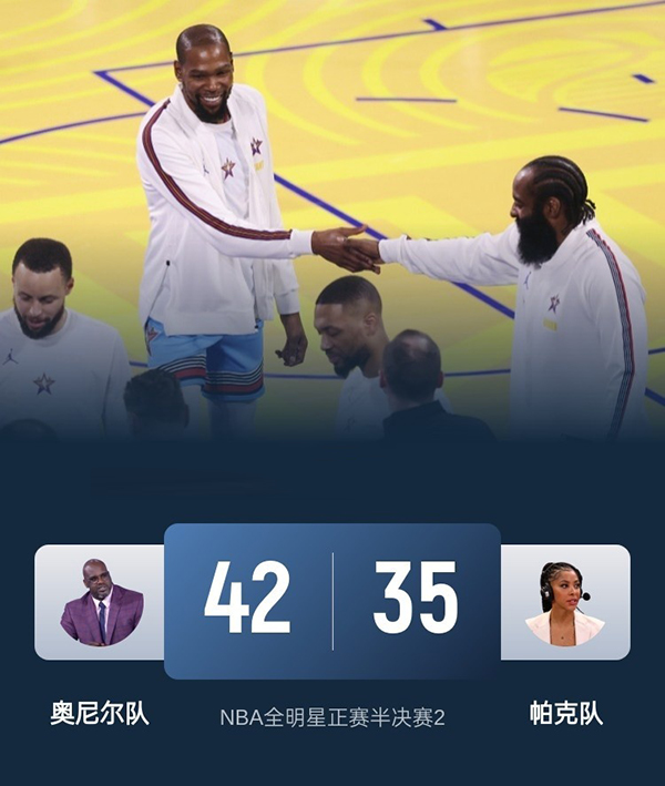 单节比分:42-35(奥尼尔队在前)。