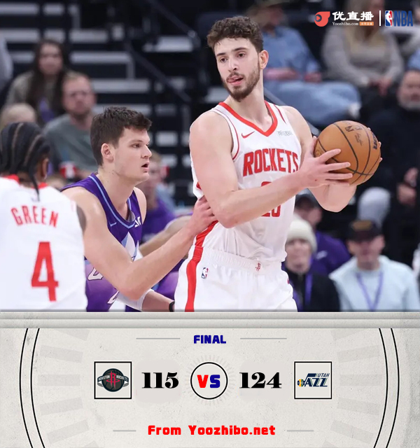 北京时间2月23日,NBA常规赛,火箭以115-124爆冷不敌爵士。首节火箭落后1分,半场打完火箭 反超6分,三节打完爵士缩小到3分,末节爵士很快反超到12分,随后爵士爆冷击败火箭。此役后火箭35胜22负,湖人34胜21负,湖人反超火箭升至西部第四,火箭掉至西部第五。