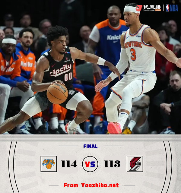 24直播网讯3月13日 NBA常规赛,尼克斯对阵开拓者,尼克斯上场比赛轻取国王结束连败,开拓者最近遭遇4连败。开场后两队打得十分激烈,场上比分也是交替上升,布里奇斯早早进入状态频频拿分。第二节两队依旧打得相当胶着,唐斯内线多次强打得手,卡马拉和夏普轮番砍分帮助开拓者紧追不舍。易边再战,阿努诺比用反击和三分为尼克斯先发制人,开拓者立马用一波7-0又将比分追上。最后一节两队依旧僵持不下,唐斯关键时刻连中两记三分,亨德森最后独得8分帮助开拓者将比赛拖入加时。加时赛中两队命中率都不理想,哈特发球失误,阿夫迪亚打成关键2+1反超比分,布里奇斯三分绝杀,最终尼克斯经过加时114-113险胜开拓者。