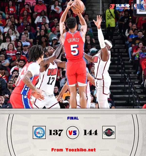 北京时间3月18日讯 NBA常规赛今日继续开打,火箭今日坐镇主场迎战76人,76人伤兵满营本场多达11人受伤缺席比赛。首节对决双方状态都出人意料,防守效率联盟高居第二的火箭首节被伤兵满营的76人轰下44分,进攻端杰伦-格林和狄龙首节合计14中1直接导致落后16分;次节火箭防守端依旧无法阻止对手,76人半场轰进15记三分,命中率超过60%并带着21分领先进入下半场。休息归来杰伦-格林回暖主导进攻,他单节拿下10分的同时送出7次助攻,火箭在第三节以惊人的73.9%命中率狂轰45分并单节抹掉最多25分劣势。末节76人在格莱姆斯的带领下送上10-0的攻势重新确立起领先,火箭无奈再度换上杰伦-格林并稳住局面紧追比分,不过火箭场面惨烈伊森6犯离场外加范弗利特二级恶犯被驱逐,不过被雪藏整个下半场的申京最后补篮自我救赎拖入加时。加时赛申京一扫阴霾上来打成2+1,随后杰伦-格林和小史密斯外线轰进三分确立起主动,格莱姆斯的两记三分为76人咬住比分,不过火箭最后顶住压力守住优势。最终,火箭在最多落后25分的情况下上演极限逆转加时力克76人取得7连胜。