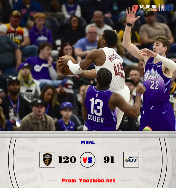 北京时间3月24日讯 NBA常规赛,爵士主场迎战骑士,爵士目前16胜55负西部垫底,骑士近期已经4连败,但56胜14负依然稳居东部榜首。比赛开始,骑士众将发力打出不错开局,随后接连外线发炮领先到双位数,凯斯勒里突外投强势止血,朱赞三分再中爵士首节追到差6分,次节塞克斯顿接连突破一波8-0一度助队反超比分,骑士短暂断电后阿伦内线给出回应,双方展开拉锯战,次节双方打平。下半场,爵士突然断电4分钟内一分未得,骑士多点开花,外线也回暖打出23-4超级攻击波一举拉开20分以上领先,末节爵士连续5记三分追分,但骑士总能回应守住20分以上领先,双方随后练兵,最终骑士120-91轻取爵士,终止4连败。