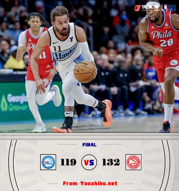 北京时间3月24日讯 NBA常规赛,76人对阵老鹰,老鹰最近表现不错取得2连胜,76人则是遭遇3连败。开场后丹尼尔斯连续空切拿分帮助老鹰抢占先机,亚布塞莱和爱德华兹联手为76人咬住比分,随后老鹰外线找到手感接连投进三分将比分拉开。第二节老鹰的轮换阵容依旧活力满满,爱德华兹连续强攻内线为76人追分,老鹰刚刚将分差拉大后又被76人追到12分。易边再战,老鹰上来就掀起攻势将分差拉大到20分以上,老鹰外线手感火热不断轰进三分。最后一节老鹰外线命中率稍有下降,76人通过反击又将分差追到个位数,老鹰在特雷-杨带领下及时稳住局面,场上分差再度被拉开,76人未能再度挽回局面,最终老鹰132-119轻松击败76人取得3连胜,76人遭遇4连败。