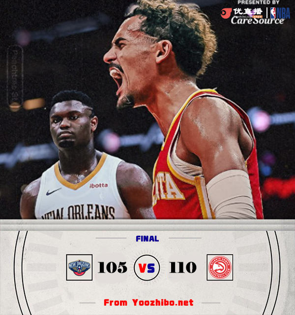 NBA季前赛,老鹰主场迎战鹈鹕。老鹰选秀大会签下15号秀巴夫金,交易得到米尔斯;而鹈鹕则是拿到14号秀霍金斯。比赛开始,双方进入状态都比较慢热,琼斯自投自补为鹈鹕开局,博格丹马上给出回应,随后双方展开拉锯战,末段鹈鹕进攻端失误太多,穆雷和特雷-杨接连反击帮助老鹰建立7分领先,次节鹈鹕进攻端受阻,老鹰抓住机会一波8-1直接拉开比分,锡安接连单打奥孔武追分,但奥孔武能在内线吃饼强势回应,半场老鹰领先到18分。下半场,约翰逊接连内线取分,老鹰一波16-6攻击波直接拉开近30分领先,鹈鹕三巨头合砍7分止血,双方围绕20分左右分差展开对攻,鹈鹕主力下去后替补连续打成反击,将分差缩至11分,末节加里森-马修斯上来接连三分稳住局势,但霍金斯都能强势回应answer ball,老鹰还是将分差保持住两球以上,最终老鹰110-105力克鹈鹕。