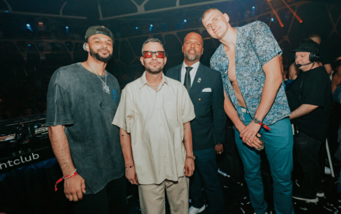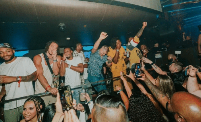 24直播网讯06月17日,掘金众将现身夜店狂欢庆祝夺冠,现场画面曝光,约基奇、戈登、穆雷、小布朗等人都来到赌城夜店狂欢,约基奇彻底玩嗨了;掘金悍将布朗更是喝醉了,自曝眼部伤得很重,直播责怪约基奇把他灌醉了。